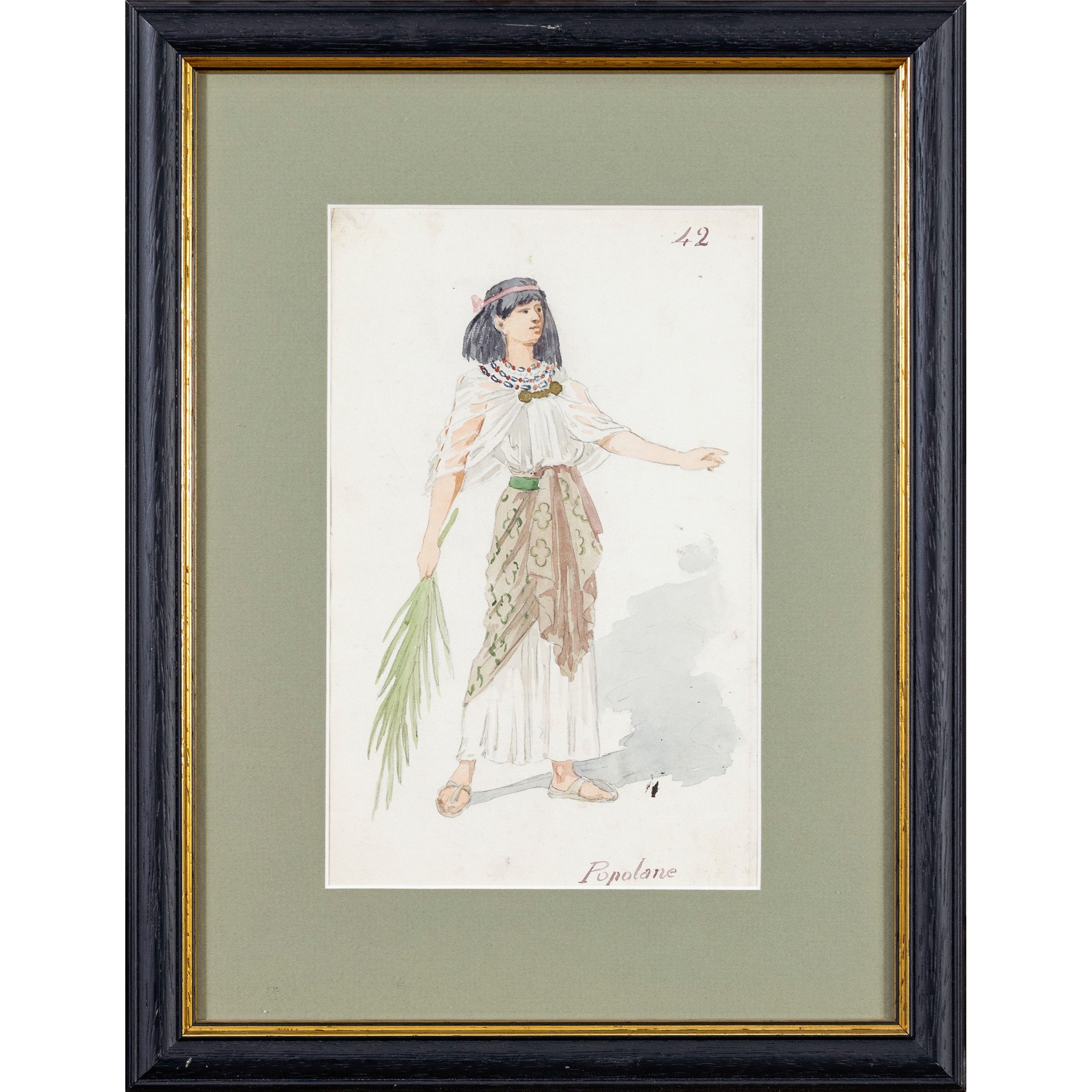 Italia, 1904 circa figurino per la rappresentazione dell'opera Aida di Giuseppe Verdi, tecnica mista su carta, entro cornice