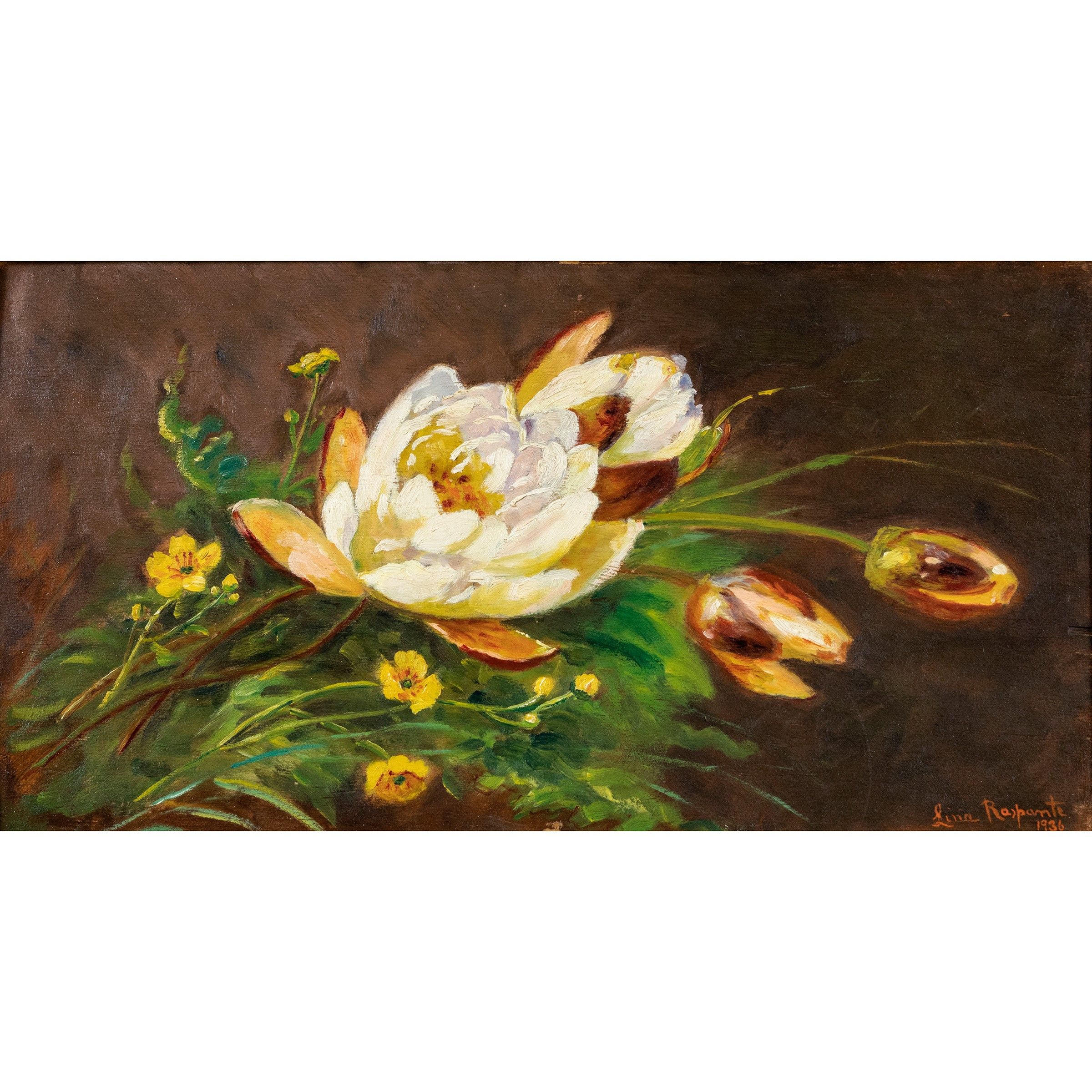 Italia, XX Sec. Composizione floreale, 1936, olio su tavoletta, firmato e datato in basso a destra