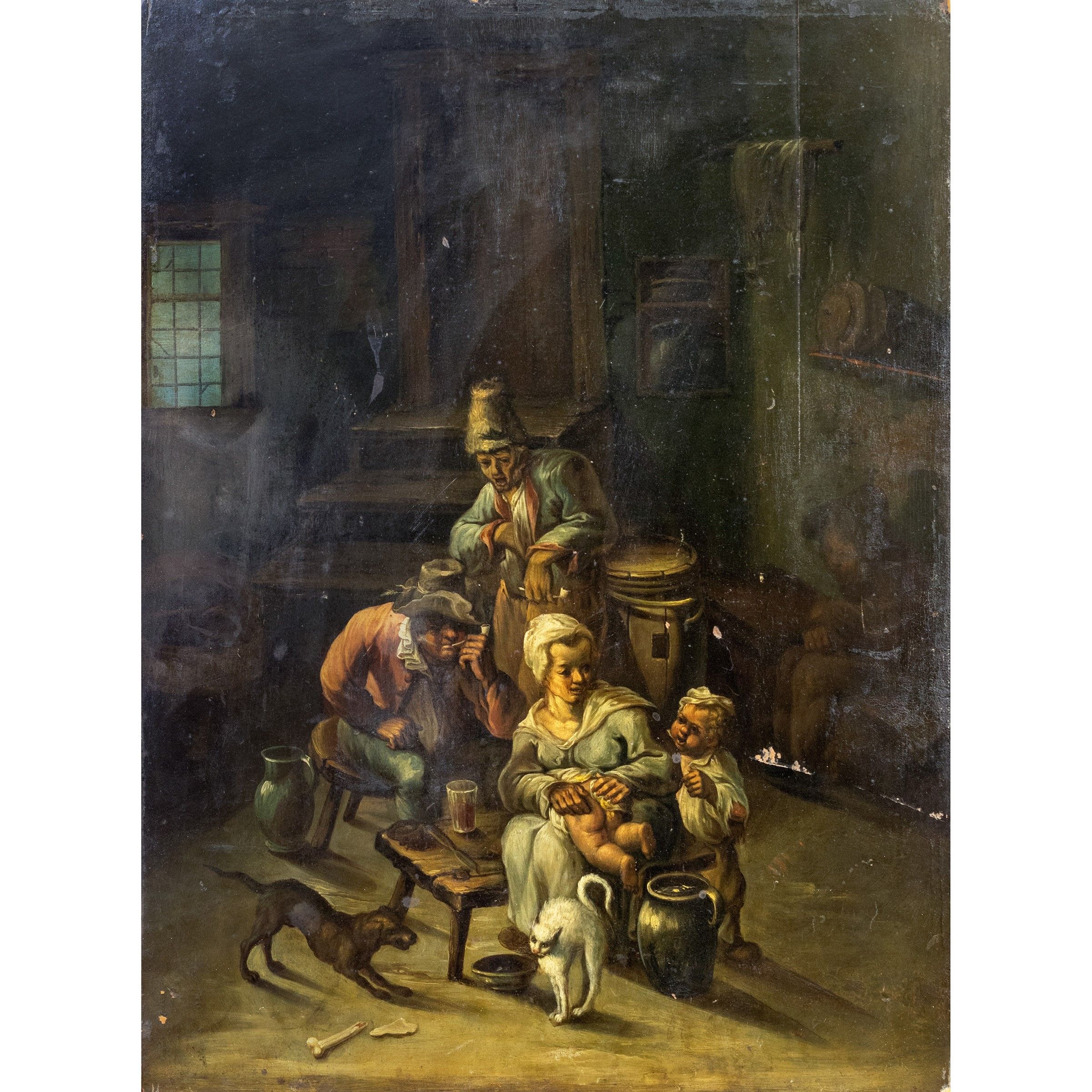XIX Sec. Scena d'interno con personaggi, olio su tavola