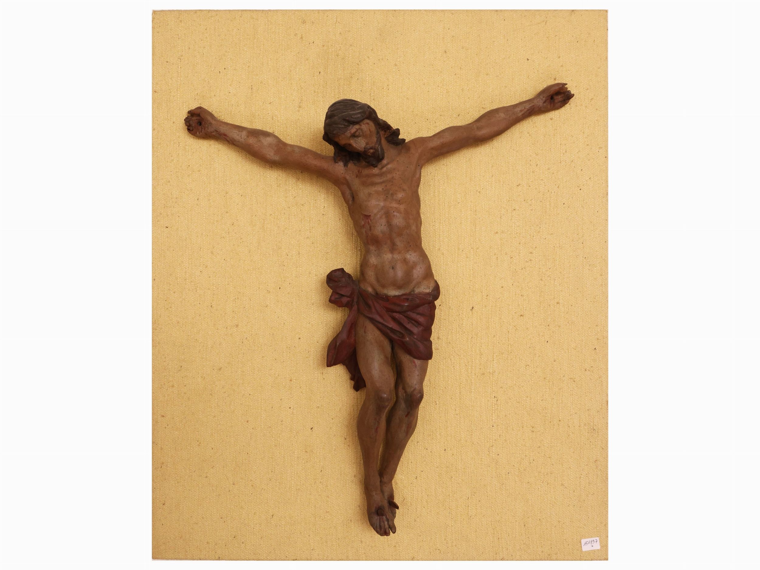 Cristo crocifisso in legno intagliato e laccato