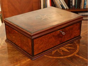 h cm 14x36x26 seconda metà del XIX secolo piano intarsiato con rosa dei venti, profili ebanizzati, vano segreto [..]
