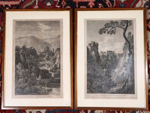 matrice cm 44x34 Anni Trenta coppia di acquatinte, firmate, in cornice, lievi difetti
