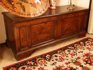 h cm 60x165x56 XVIII secolo coperchio con gocciolatoio, fronte a due formelle con cornici modanate, piedi a mensola, [..]