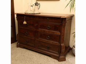 h cm 165x107x60 inizio del XX secolo cappello con piano a incasso in marmo grigio, sei cassetti sul fronte tra [..]