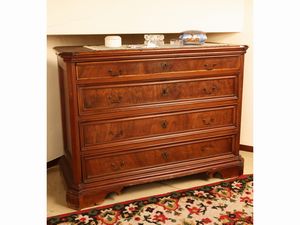 h cm 86x59x45 inizio del XIX secolo cinque cassetti sul fronte, piano in travertino di epoca posteriore, piedi [..]