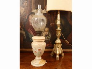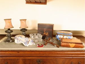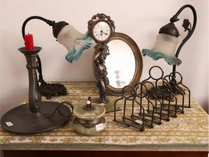 da h cm 9 a h cm 32 (7) tra cui una coppia di lumi da tavolo in metallo e bobeche in vetro, una scatola in onice [..]