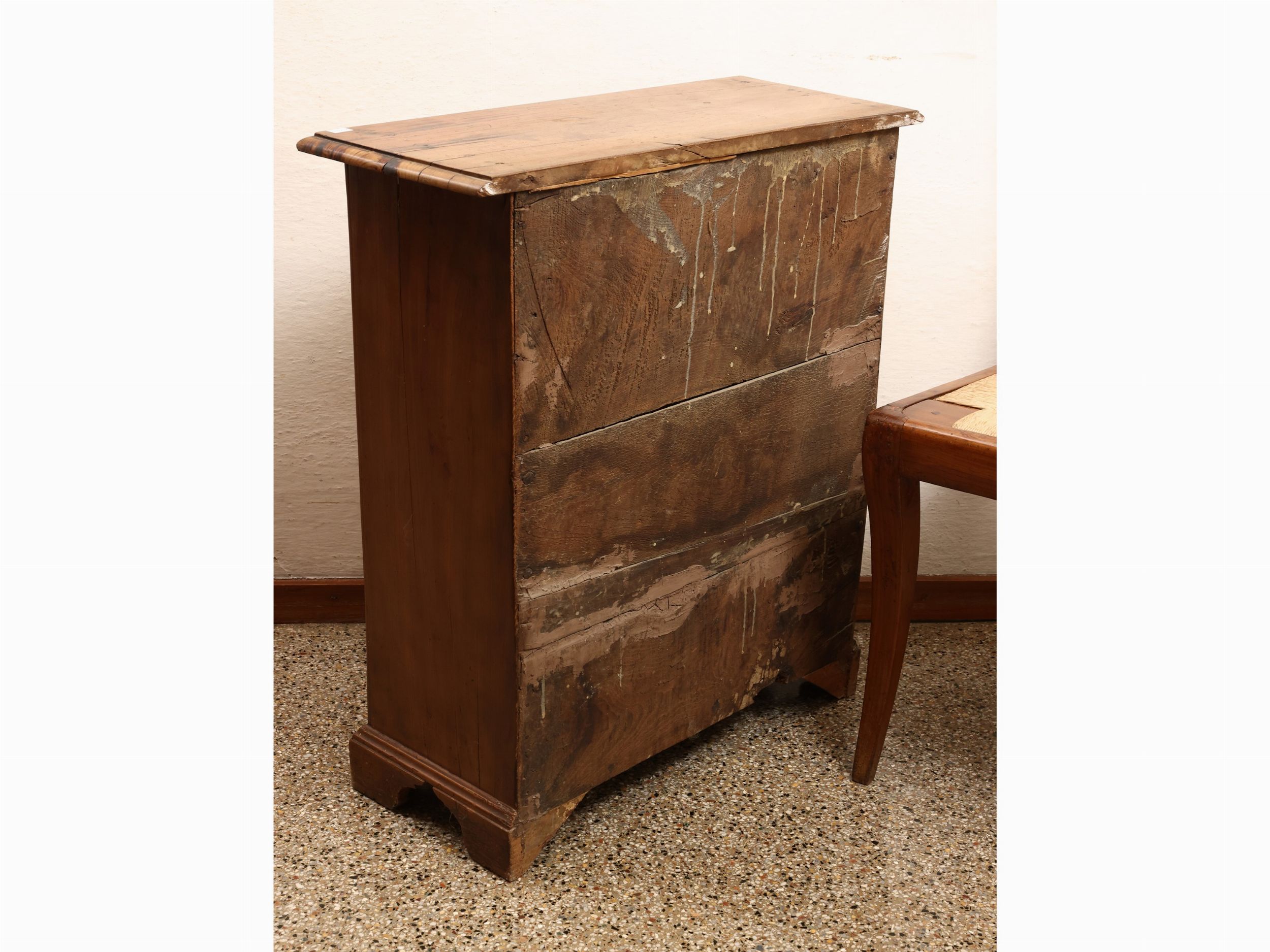 XIX/XX secolo un tavolino in noce e legno tenero ed una piccola cassettiera in ciliegio, lievi difetti