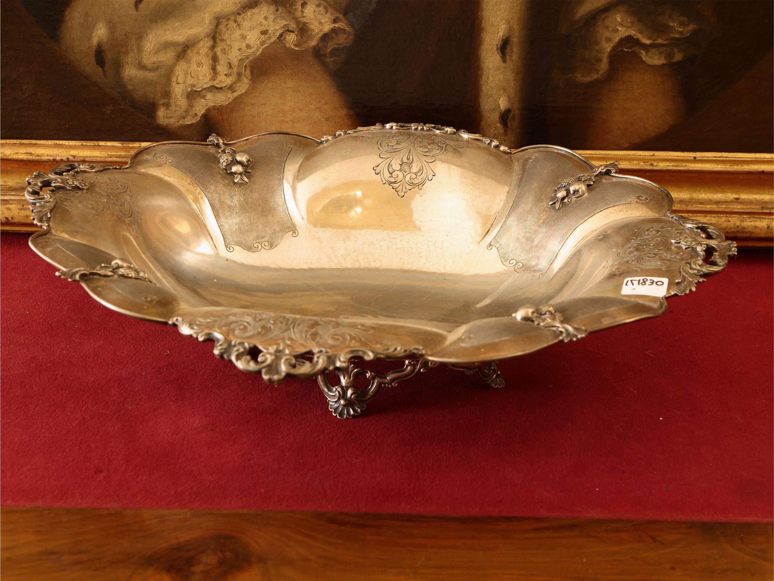 Grande cestino centrotavola in argento cesellato