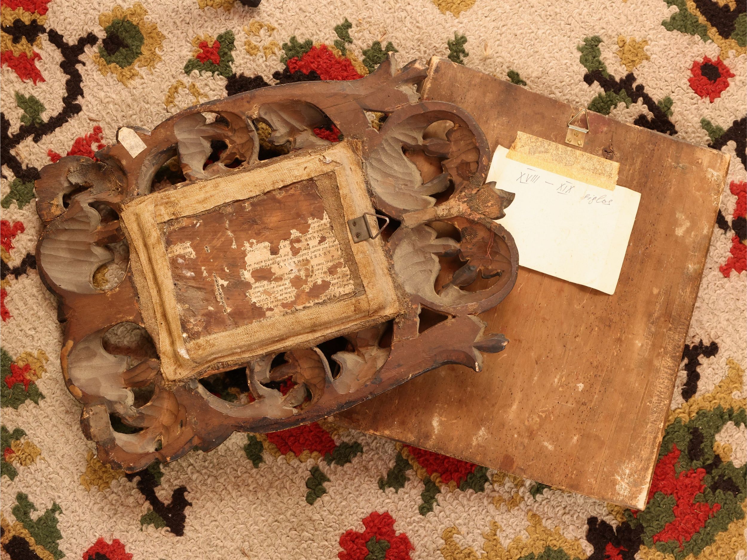 icona russa del XIX secolo a tempera su tavoletta e dipinto a olio su tavoletta della fine del XIX/inizio del XX secolo nello stile della pittura gotica, una in cornice, alcuni difetti