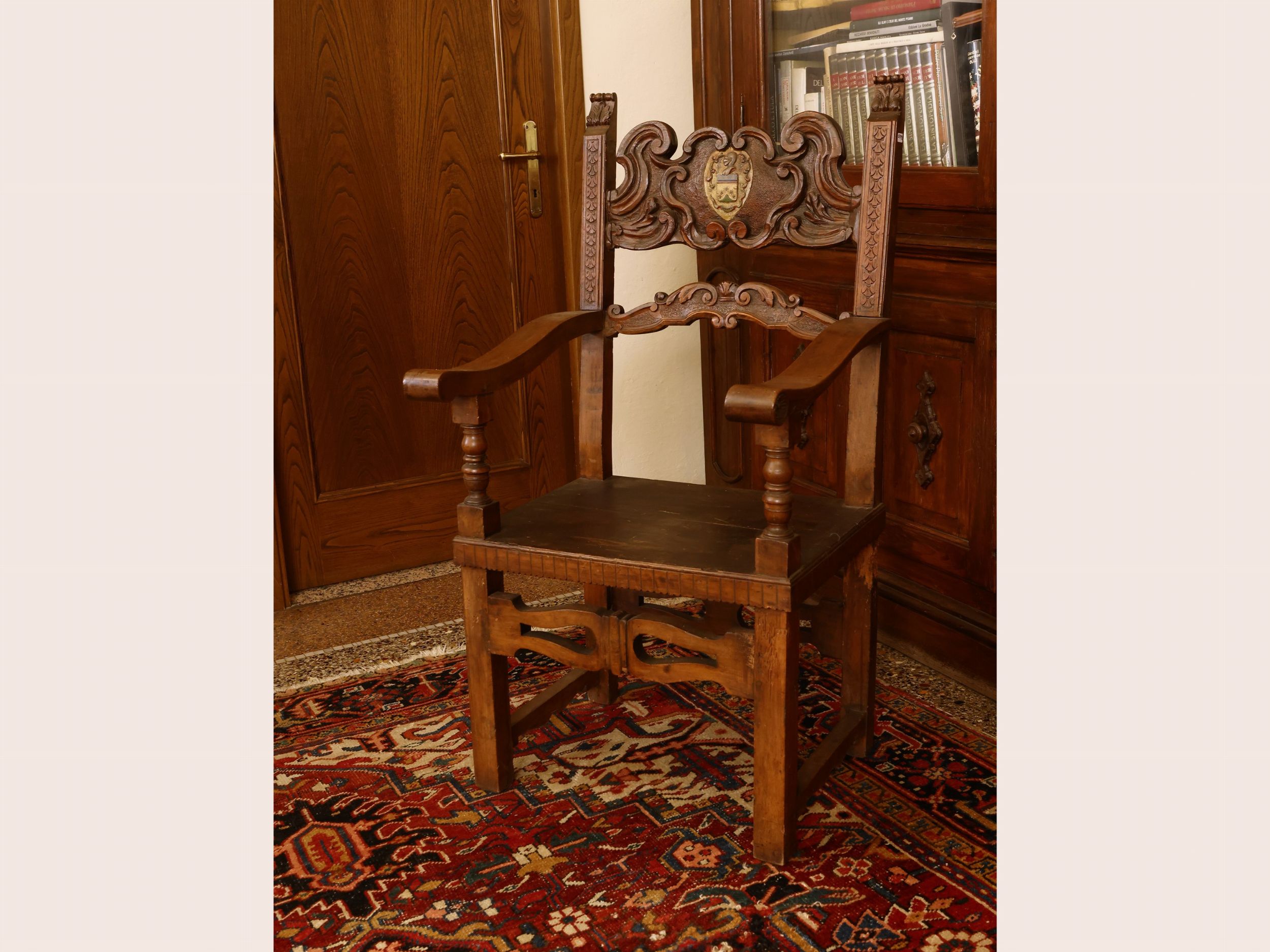 inizio del XX secolo realizzato in stile seicentesco, cartella intagliata con stemma gentilizio, alcuni difetti