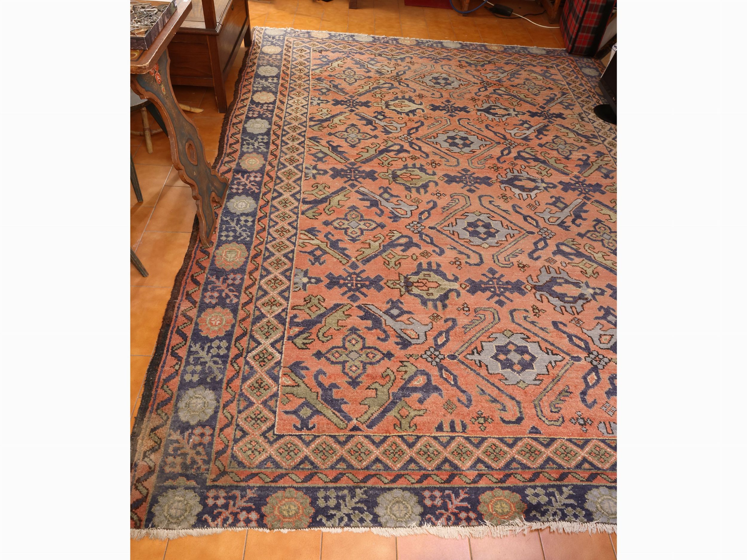 fondo cipria decorati con motivi geometri nei toni del blu, azzurro e verde salvia, lievi difetti