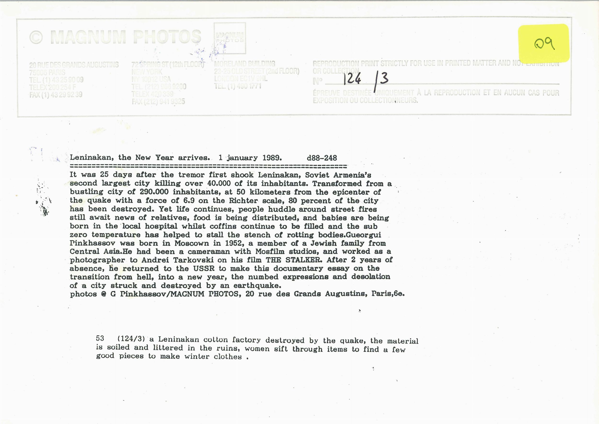 A Leninakan cotton factory destroyed by the quake, the New Year arrives. 1 January, [..]