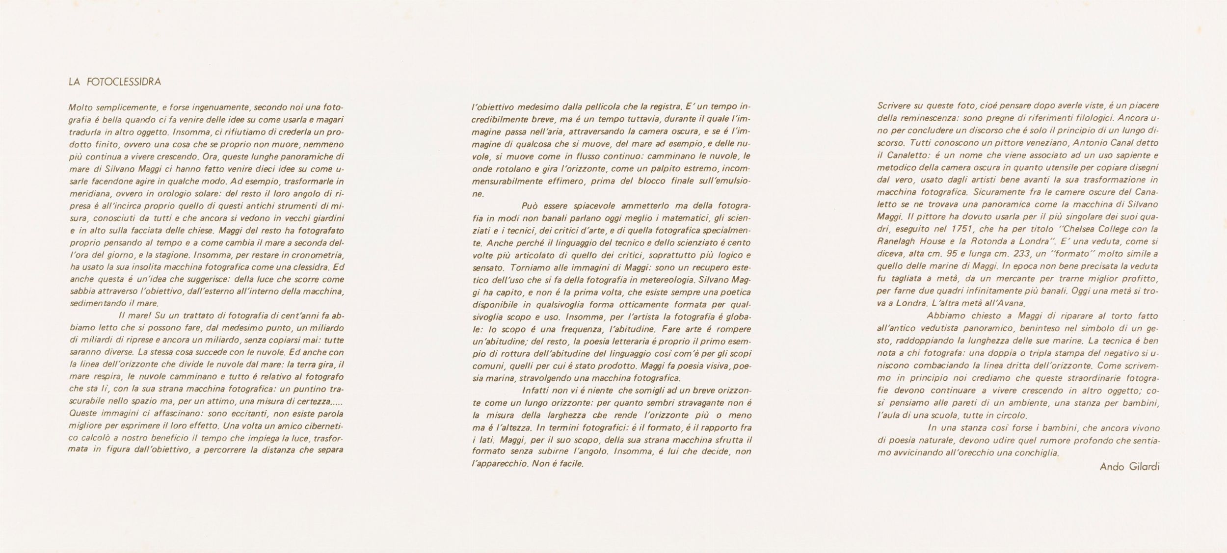 9 stampe C-print vintage montate su cartoncino, in custodia originale in tela più un foglio sciolto, cm 19,3 x 42,5 (cm 13,2 x 39 immagine) ; cm 21,5 x 44 x 3 custodia