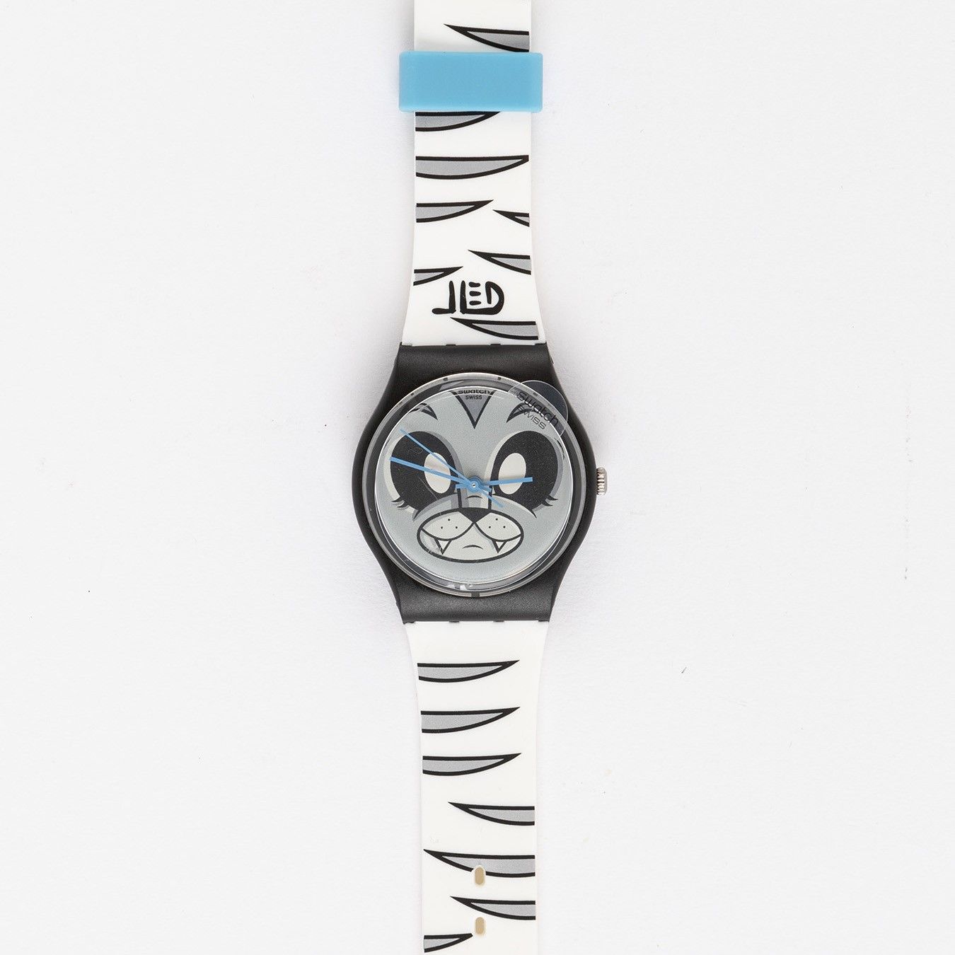 Swatch ha collaborato con Kidrobot, il marchio di giocattoli e lifestyle alla moda, per creare la nuova Kidrobot for Swatch Collection. Si tratta di otto modelli Gent. BENGALI è stato creato dall'artista americano Joe Ledbetter di Los Angeles. Per il suo design dello Swatch Gent, ha utilizzato un simpatico muso di gatto sul quadrante e il cinturino di gomma è una pelliccia a strisce bianche e grigie.