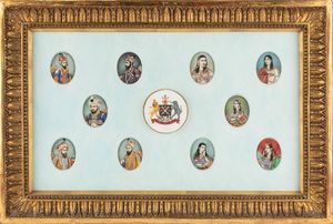 Collezione di dieci miniature con ritratti e uno stemma nobiliare