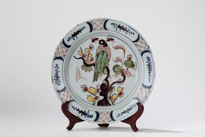 Manifattura di Delft secolo XIX, piatto in maiolica a decoro orientale
