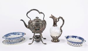 Lotto composto da una bottiglia in cristallo, montata in argento; un bollitore in [..]