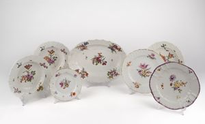 Lotto composto da tre piatti fondi in porcellana di Vienna con decoro floreale e [..]