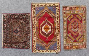 Lotto di tre piccoli tappeti orientali
