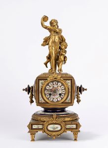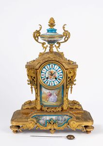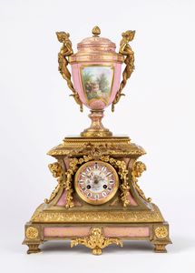 h cm 49 in bronzo dorato e porcellana dipinta. Suoneria delle ore e delle mezze. Movimento anonimo.