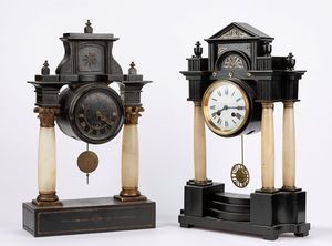 Due orologi da appoggio austrici in legno e alabastro