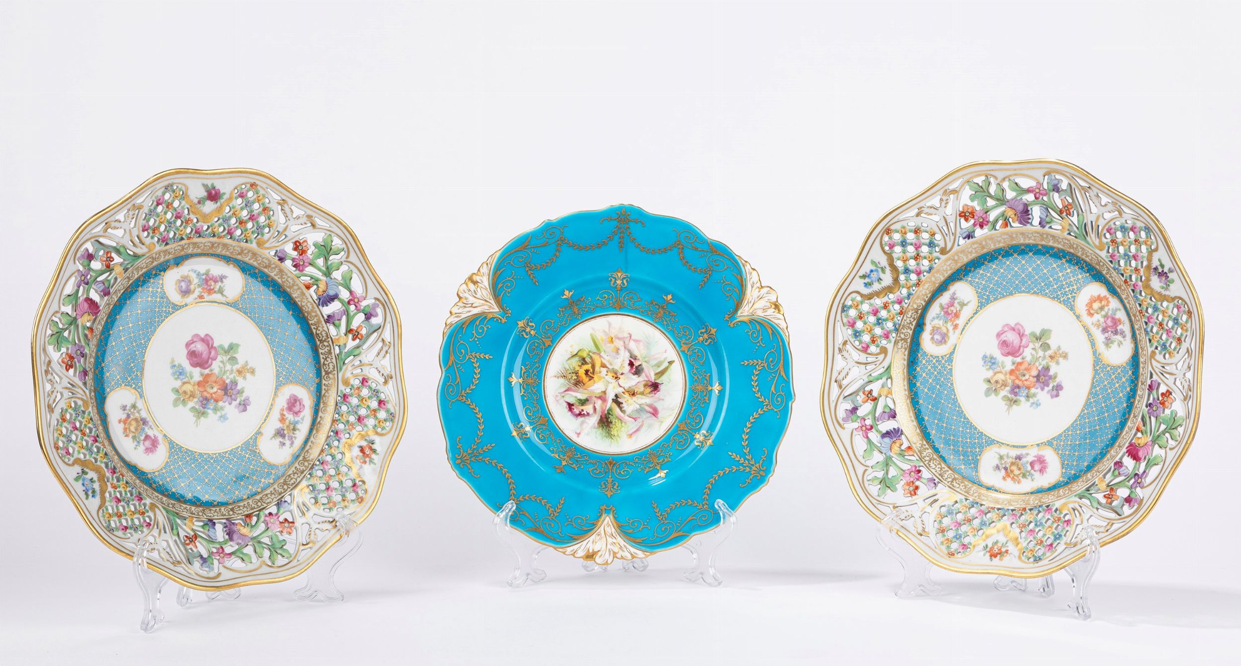 di cui i due traforati manifattura di Dresda, quello turchese a decoro floreale a manifattura inglese