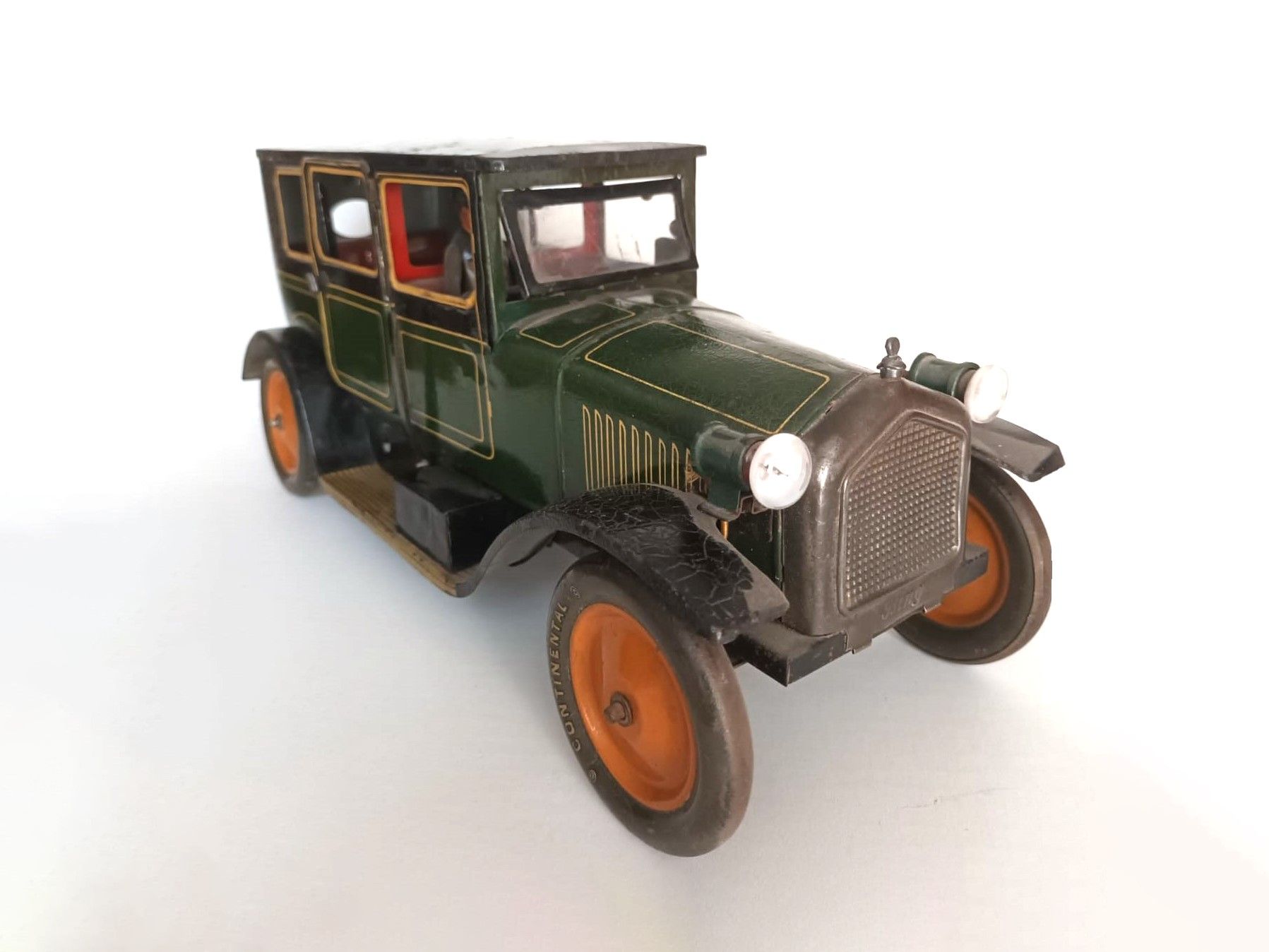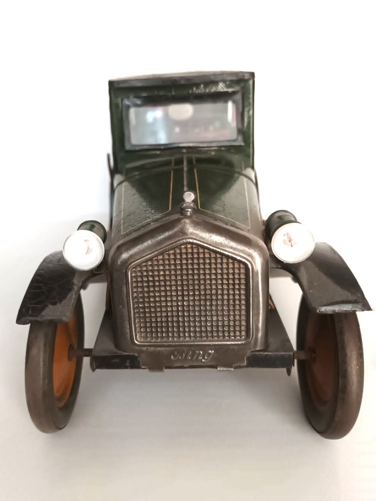 Latta litografata, carica a molla, due portiere apribili, parabrezza anteriore regolabile e 2 luci elettriche