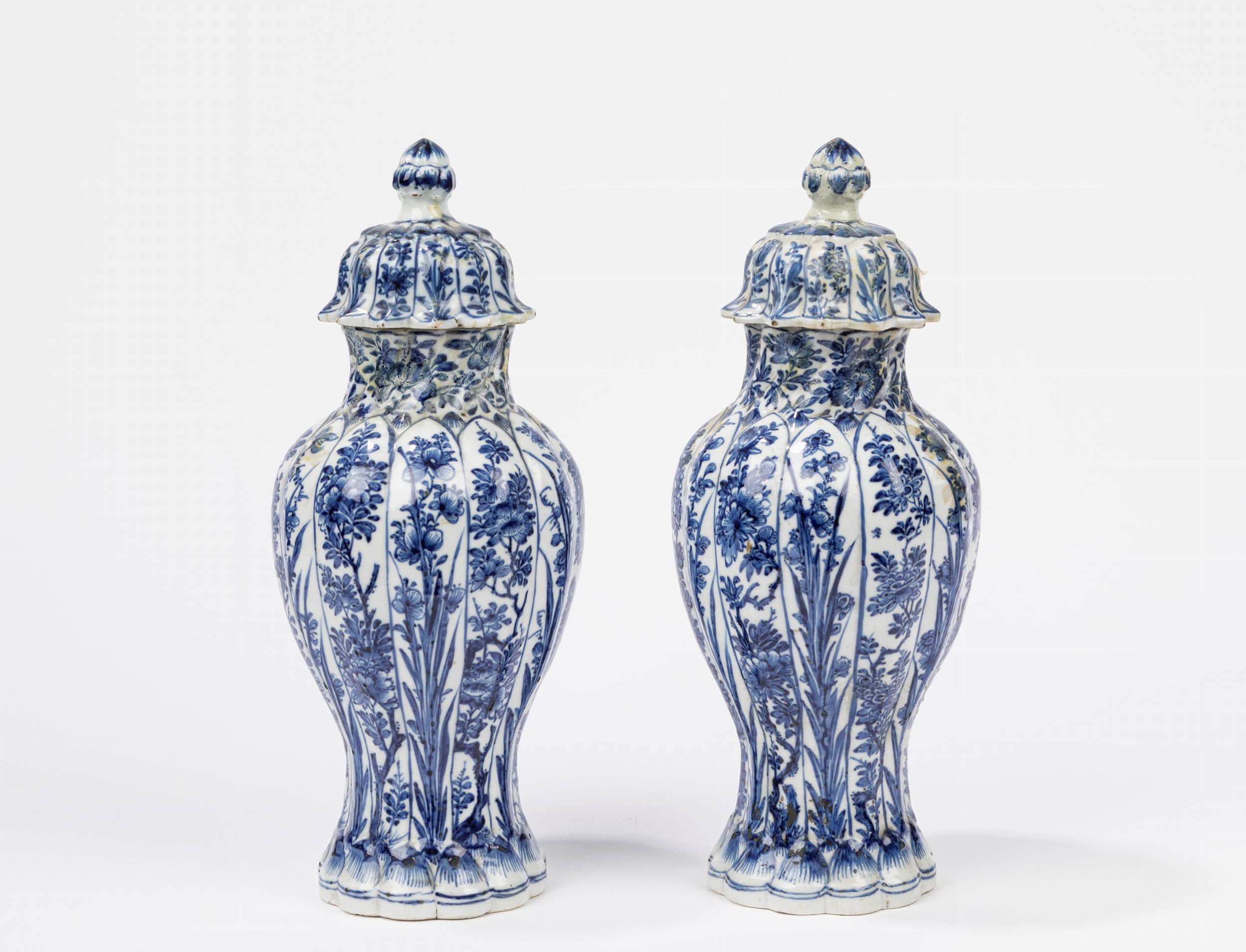 di forma costolata, decorati a motivi floreali e fogliacei (coperchi restaurati)