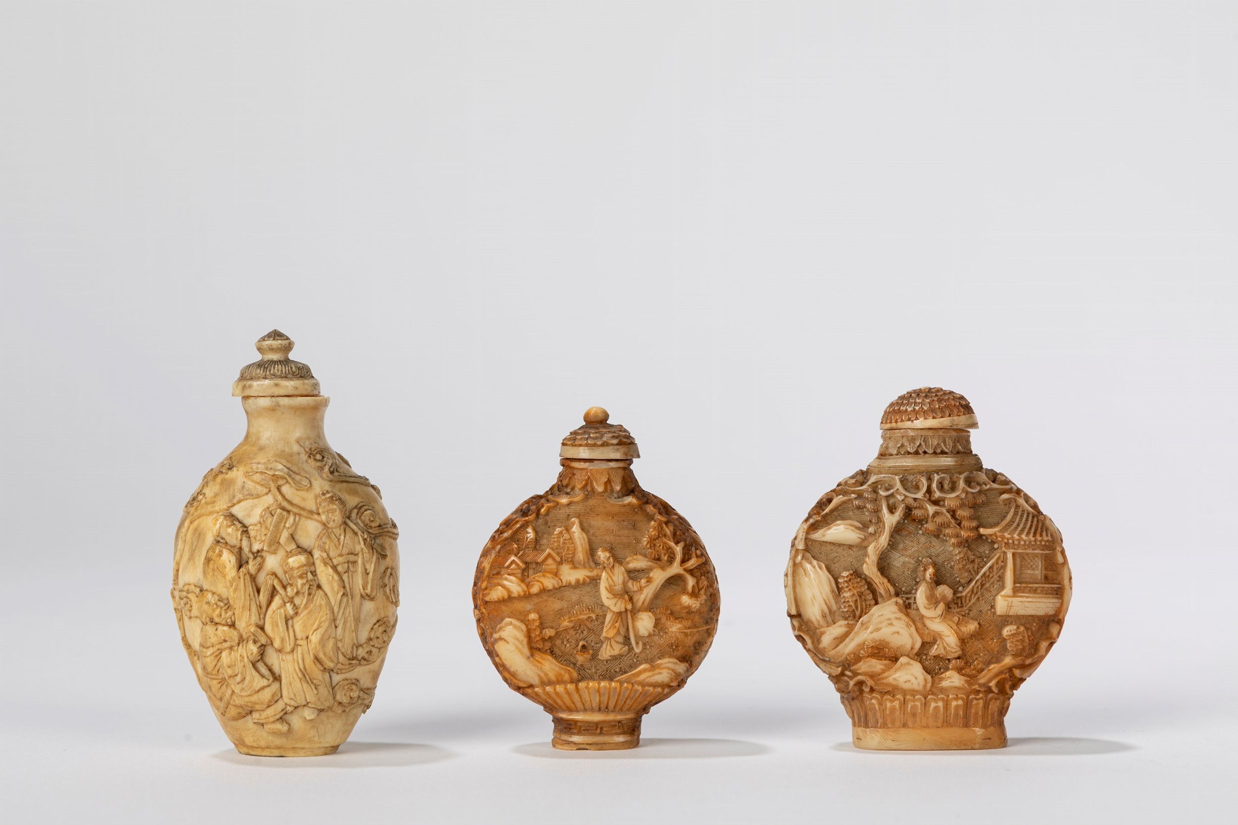 三个象牙鼻烟壶 中国,20 世纪初