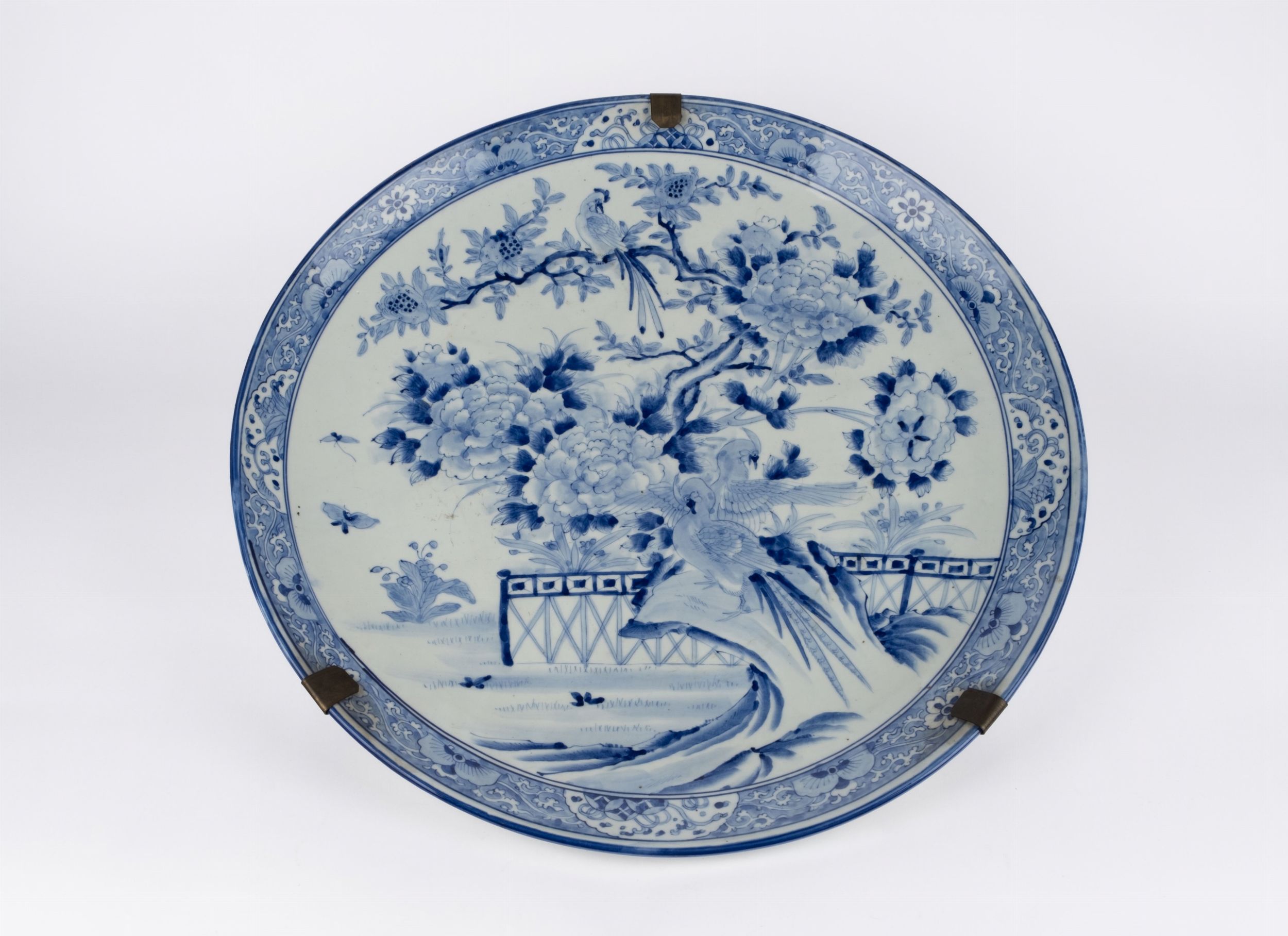 Grande piatto in porcellana bianca e blu. Giappone, secolo XIX