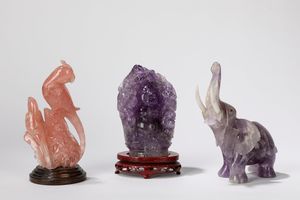 (misure diverse) raffiguranti un volatile in quarzo, un elefante e un buddha in ametista