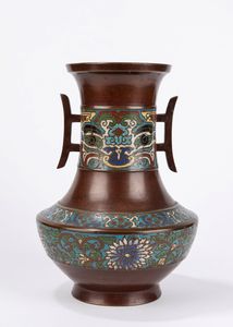 Vaso biansato in metallo cloisonné. Giappone, inizio secolo XX