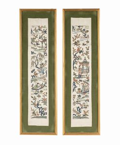 Coppia di tessuti ricamati. Cina, secolo XIX