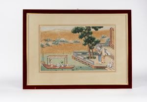 Coppia di stampe acquarellate. Cina, secolo XIX