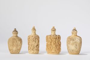 ☼Lotto composto da quattro snuff bottles in avorio. Cina, dinastia Qing, fine [..]