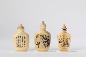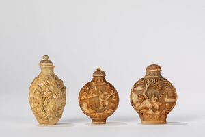 ☼Lotto composto da tre snuff bottles in avorio. Cina, inizio secolo XX