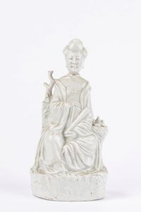 Scultura in porcellana bianca raffigurante dama. Cina, inizio secolo XX