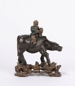 h cm 18,2 x l cm 15 raffigurante monaco su bue (base in legno)