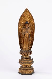 Scultura in legno raffigurante Buddha assiso, in posizione di vitarka mudra. Giappone, [..]