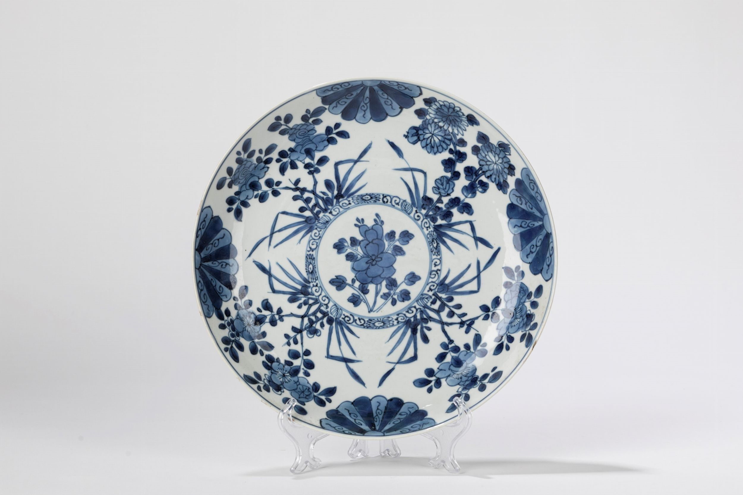 Piatto in porcellana bianca e blu. Cina, periodo Kangxi (1661-1722)