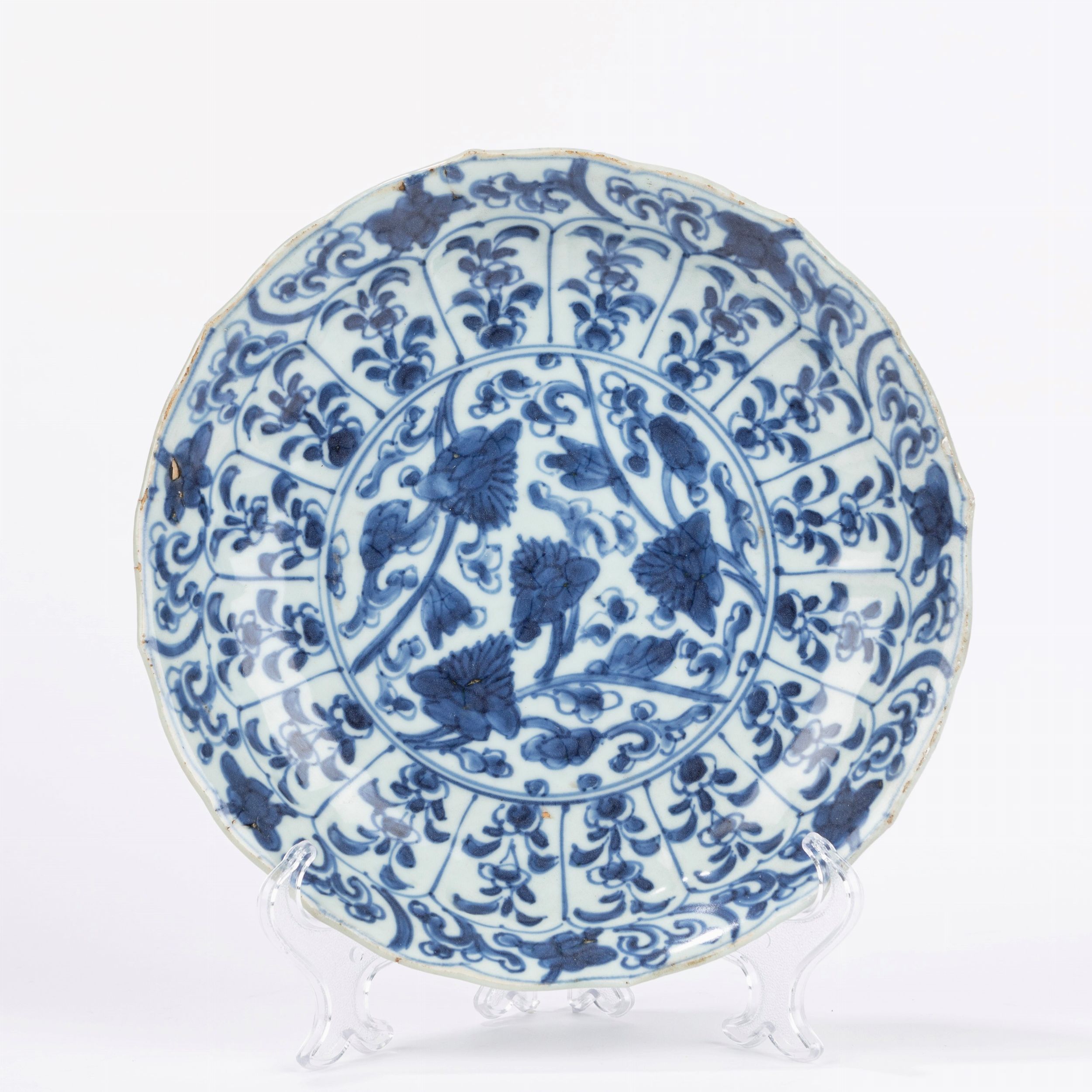 Piatto in porcellana bianca e blu. Cina, secolo XVIII