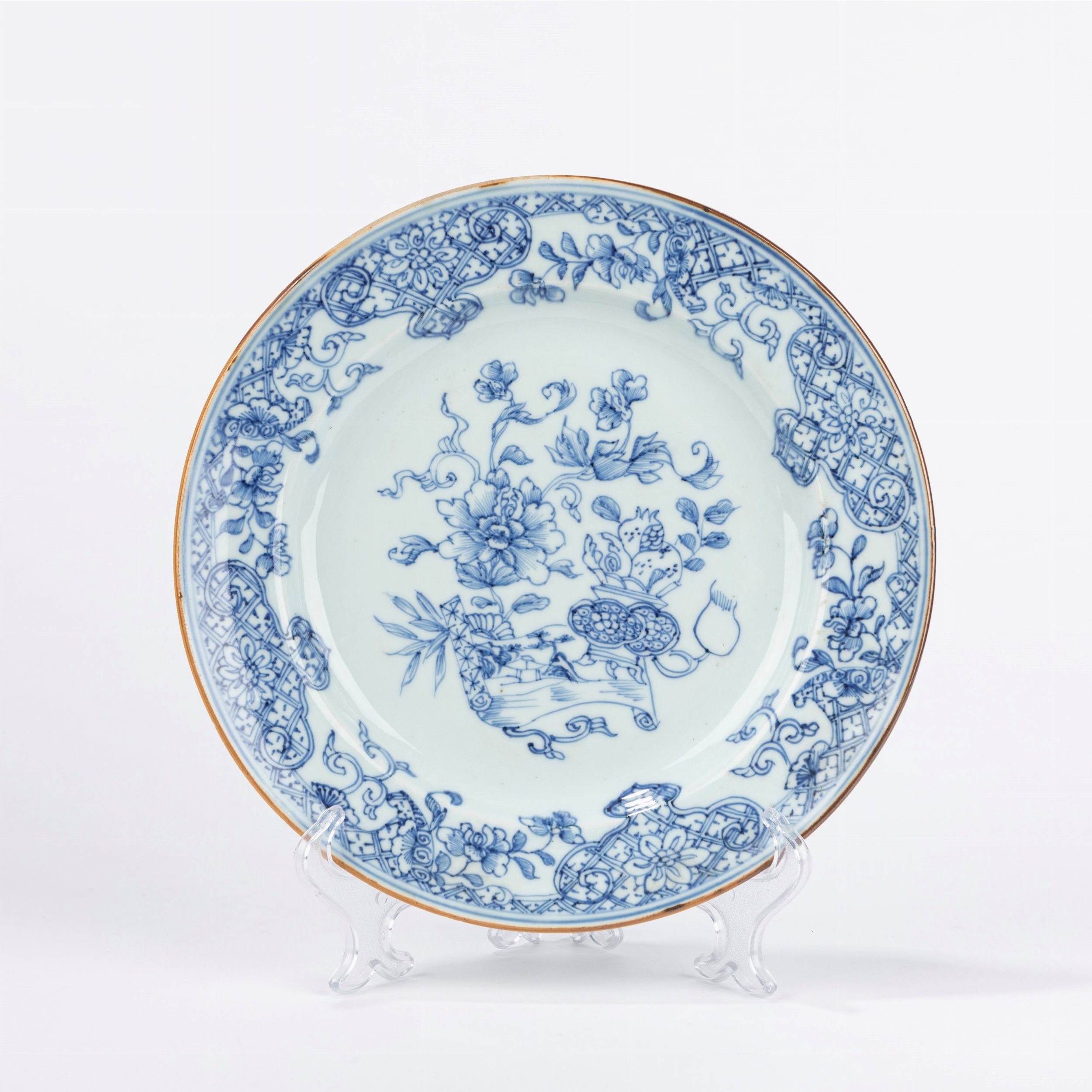 Piatto in porcellana bianca e blu. Cina, secolo XVIII