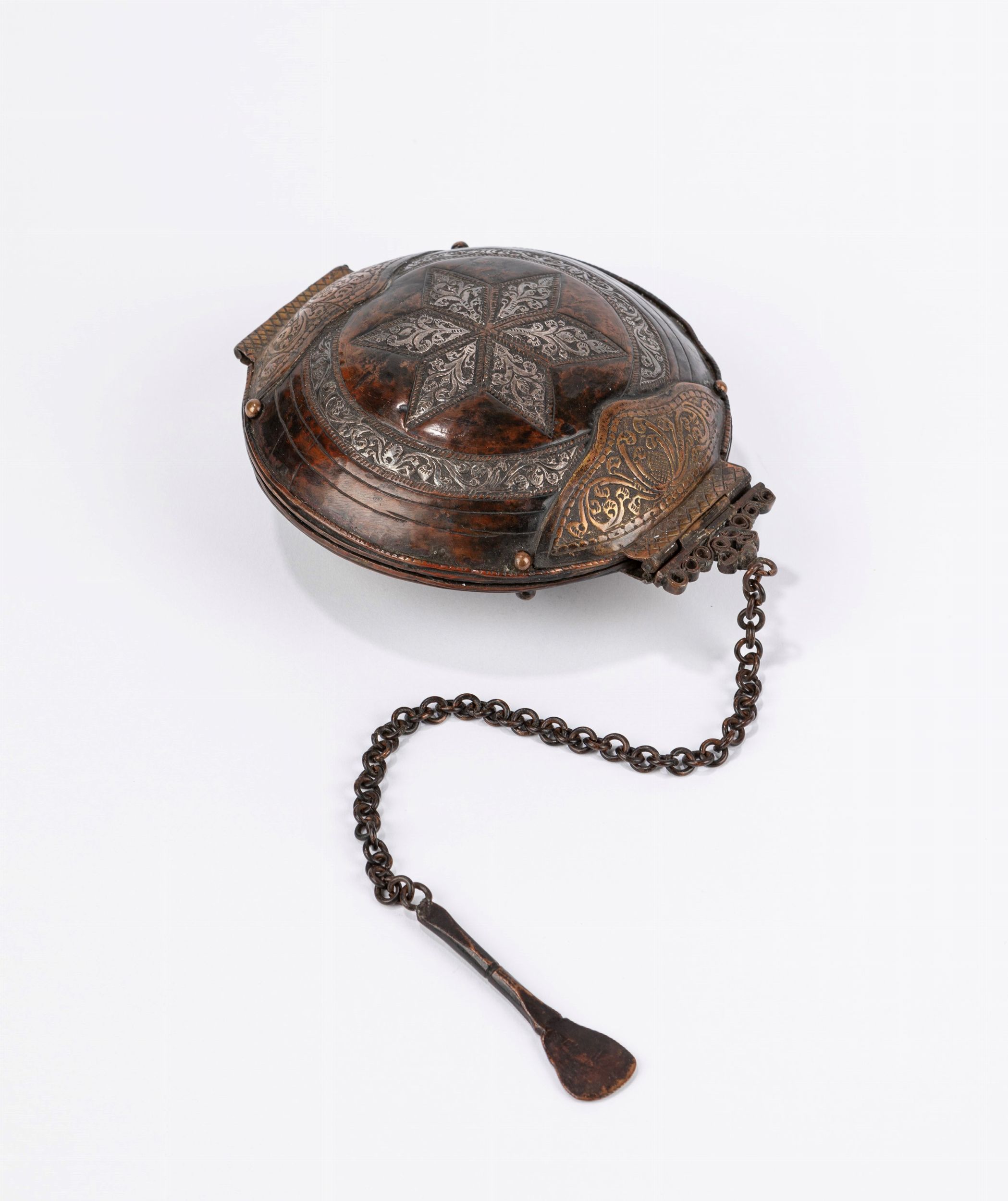 Scatola in metallo sbalzato e rame. Asia Centrale, secolo XIX