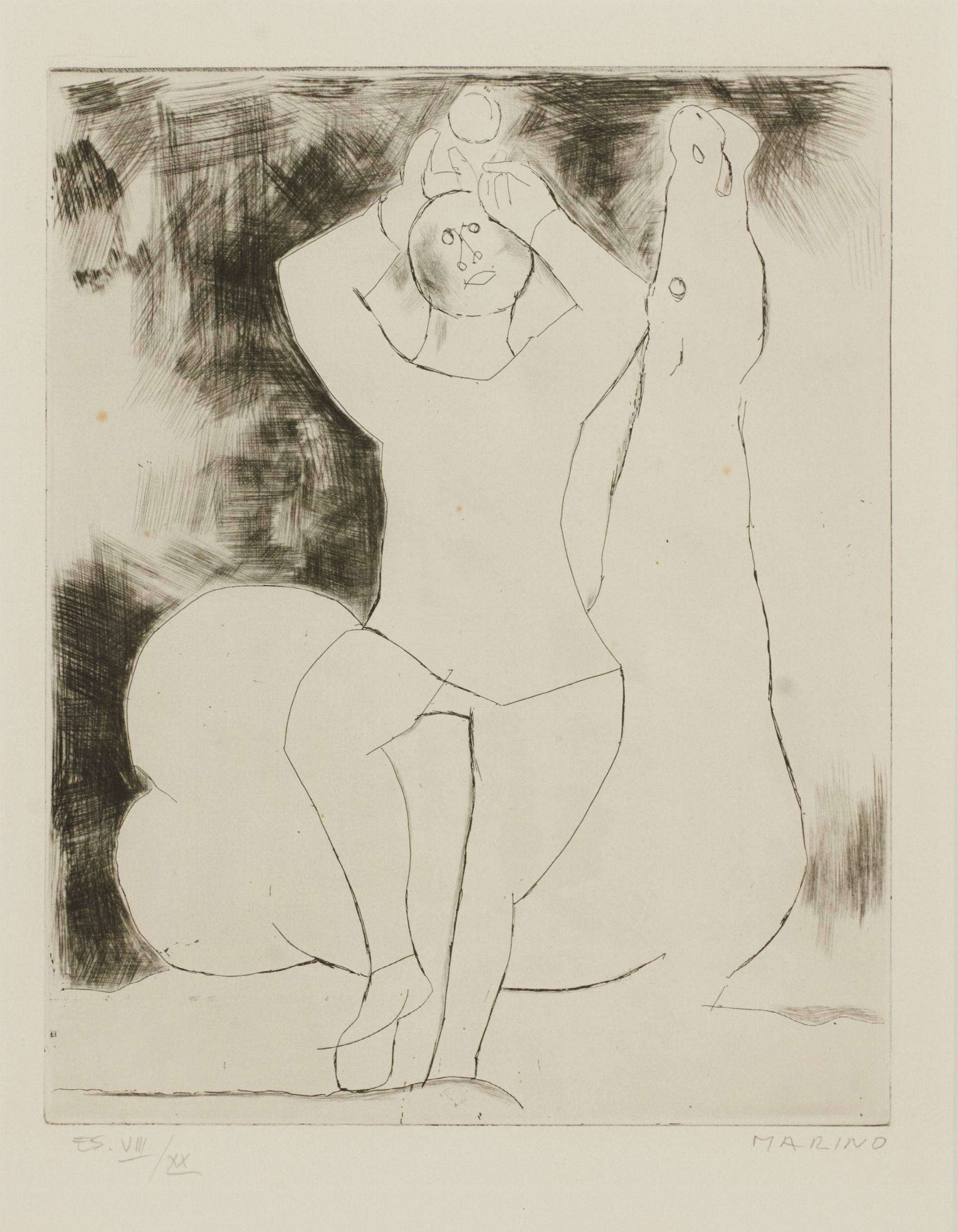 L'opera fa parte della cartella Marino Marini opera grafica, incisori italiani contemporanei, contenente 20 acqueforti e puntesecche incise dal 1959 al 1971, Luigi De Tullio Editore. Le incisioni impresse su Vélin Cuve BFK Rives Velin D'Arches e carta Tino Magnani, sono custodite singolarmente in 20 passe-partout di cm. 74x54.
