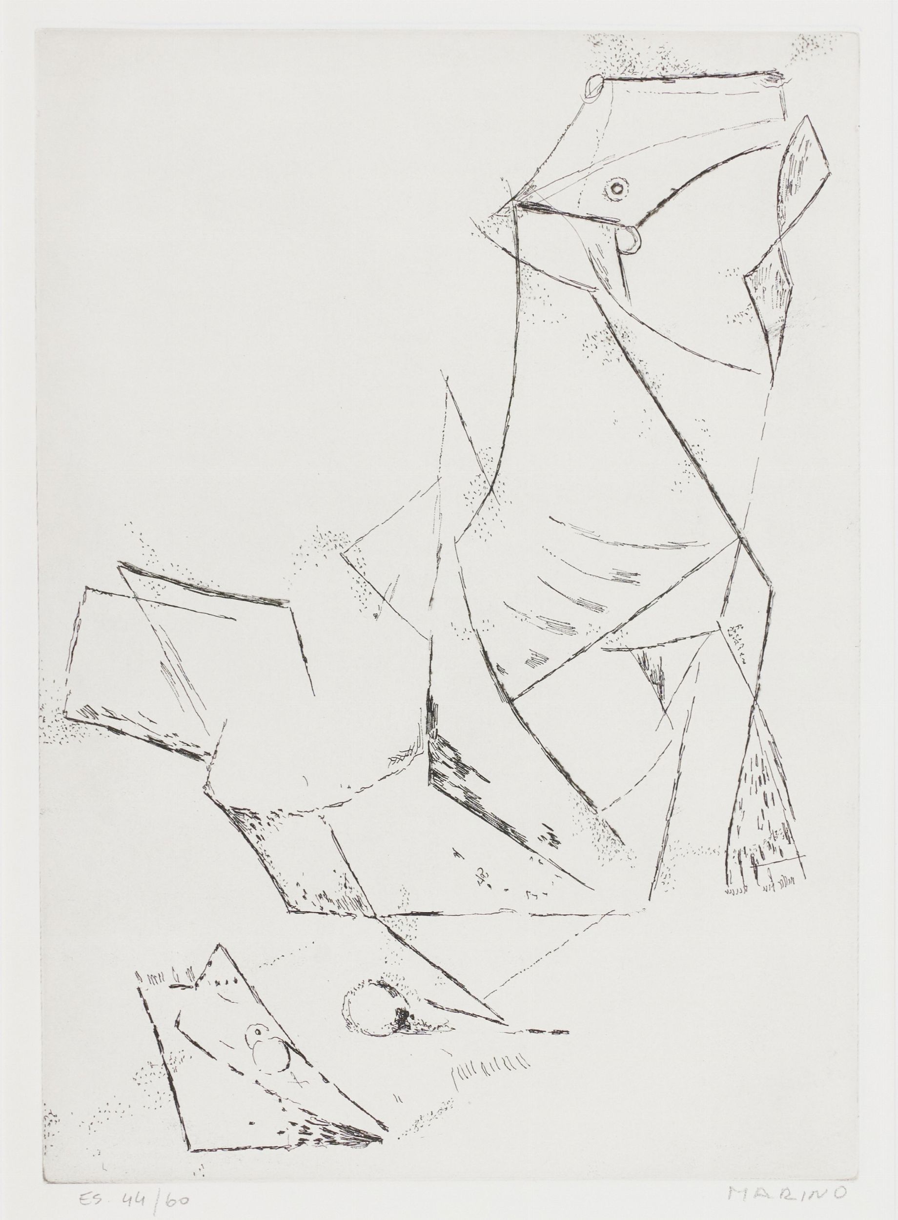 L'opera fa parte della cartella Marino Marini opera grafica, incisori italiani contemporanei, contenente 20 acqueforti e puntesecche incise dal 1959 al 1971, Luigi De Tullio Editore. Le incisioni impresse su Vélin Cuve BFK Rives Velin D'Arches e carta Tino Magnani, sono custodite singolarmente in 20 passe-partout di cm. 74x54.