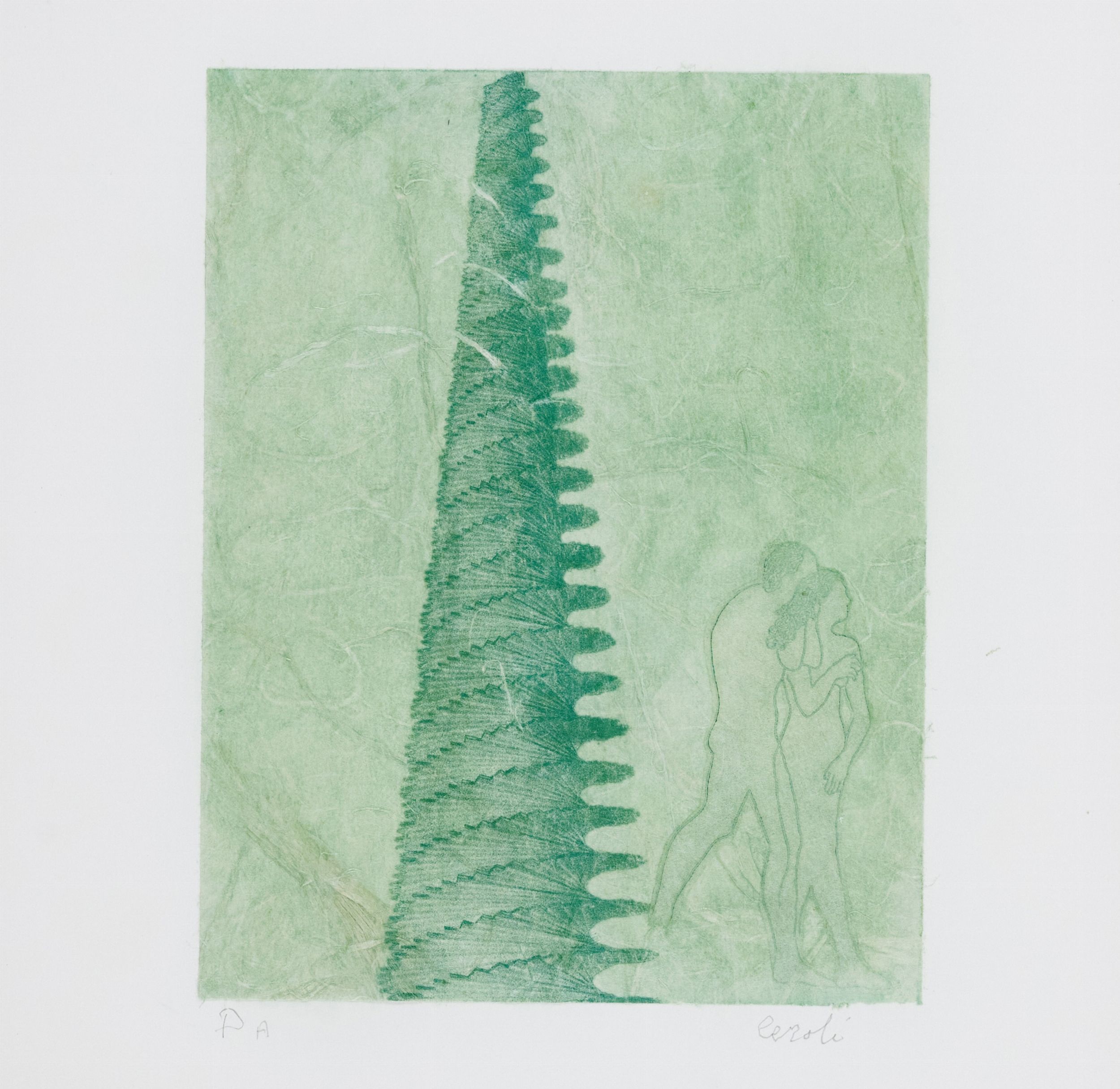 Litografia su carta di cm. 24x19, applicata su cartoncino di cm. 30x30