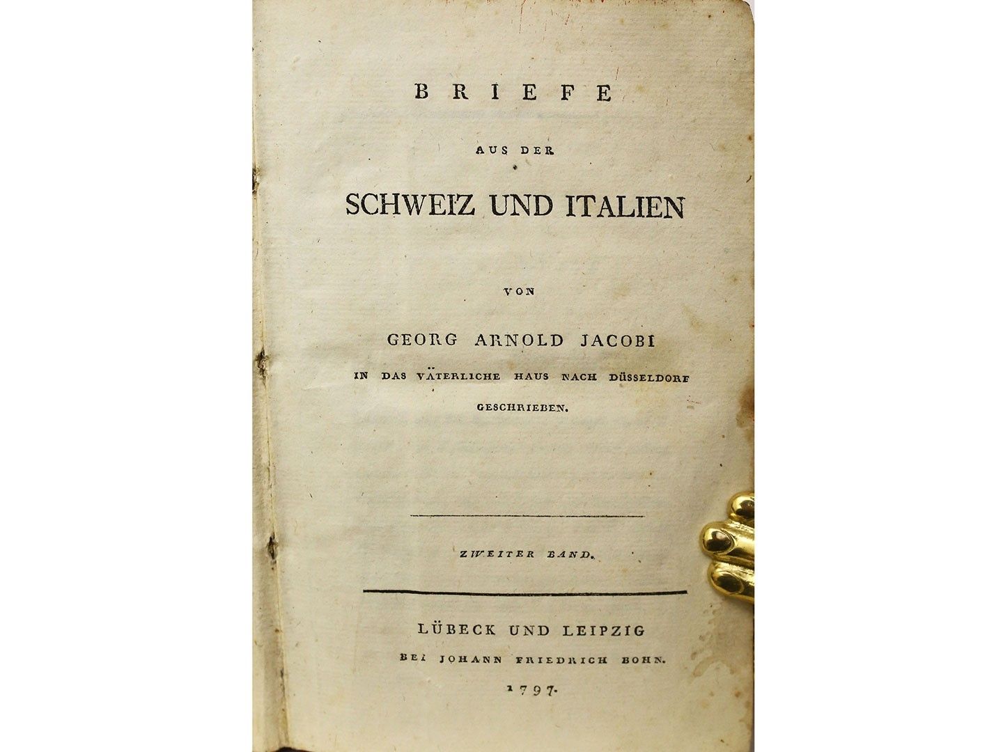 Lübeck und Leipzig: Johann Friedrich Bohn, 1796–1797, 2 voll. In-8° (168x110 mm) [8], 358, [1] p.; 428, [4] p. Legatura cartonata coeva con titoli calligrafici su cartigli ai dorsi, mende d'uso, cerniere allentate. Tagli spruzzati rossi. Fioriture sparse. Prima edizione (2)