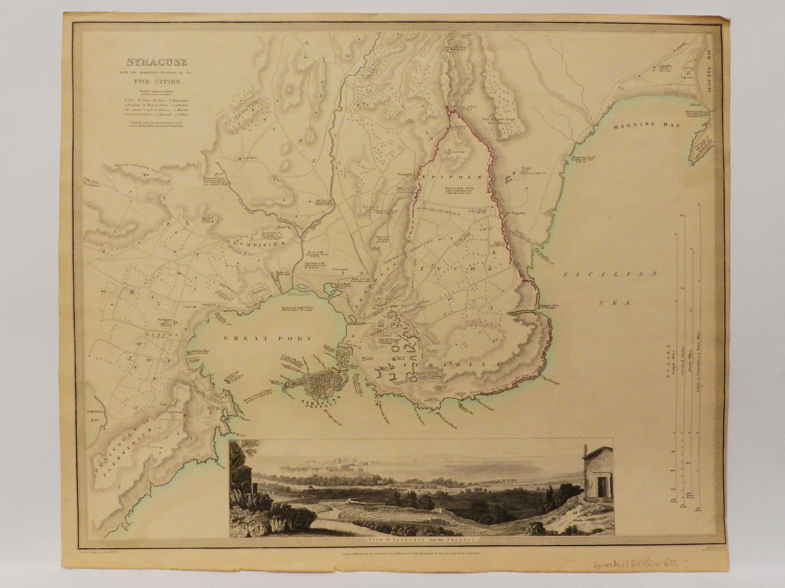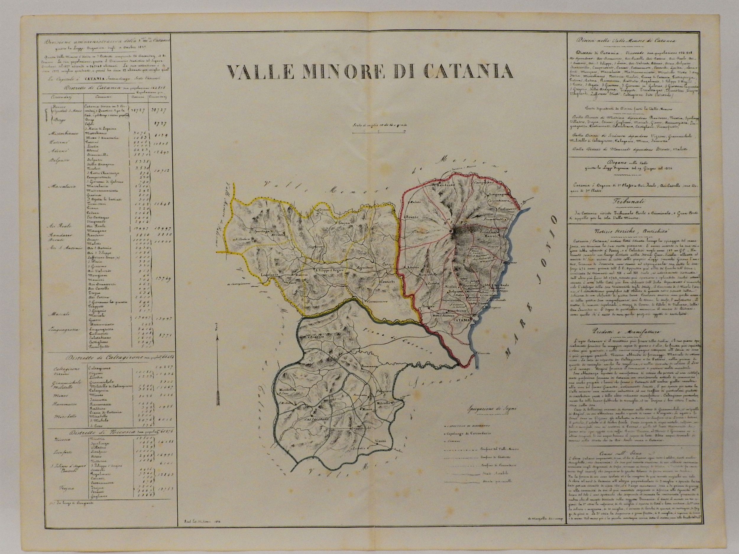 prima metà del XIX secolo due litografie di cui una a doppia pagina e un'incisione tra cui la Carte Oryctographique, ou à vol d’oiseau de l’Etna, dressée sur les observations de Joseph Recupero tratta da Voyage Pittoresque... del 1829, alcuni difetti e una con rinforzo lungo la linea di piegatura centrale