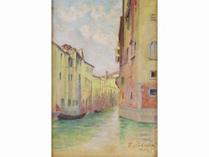 cm 20x25,5 fine del XIX/inizio del XX secolo acquerello su carta applicata a cartoncino, firmato, in cornice, [..]