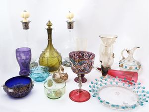 h da cm 5,5 a cm 33 (15) alcuni dei quali realizzati in vetro di Murano, tra cui un piatto in vetro incolore con [..]